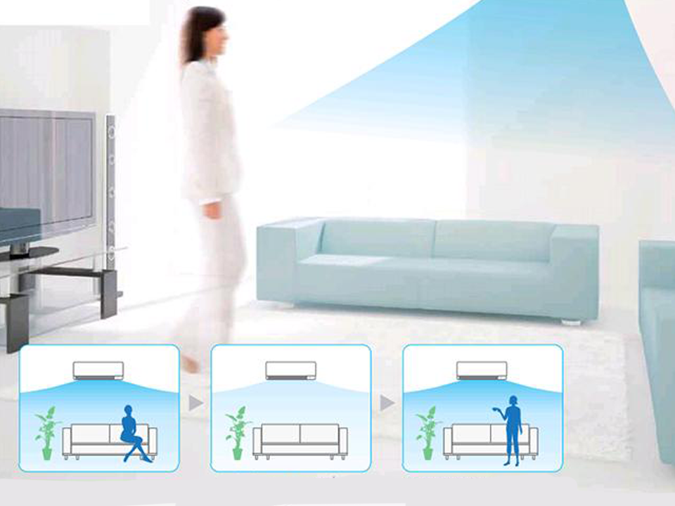 Климатика е снабден със сензор който следи в 3 зони за движение. По този начин климатикът насочва въздушния поток към зона, различна от тази, където се намира човекът. Подаването на струята се извършва в 3 посоки: на ляво, на пред и на дясно. Ако климатика не отчете присъствие, той автоматично ще премине в икономичен режим.
