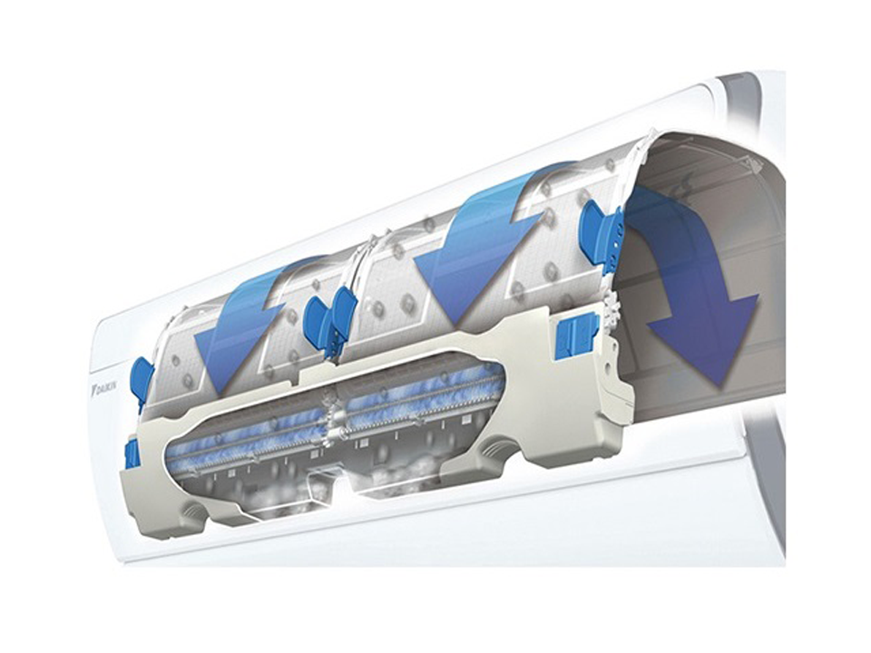 Климатиците като концепция работят само с рециркулационен въздух, но не такава е концепцията на DAIKIN. Климатиците Ururu Sarara вкарват свеж въздух от вън . Преминал 5-кратна филтрация се постига една по-здравословна среда с чист и свеж въздух дори при затворени прозорци.