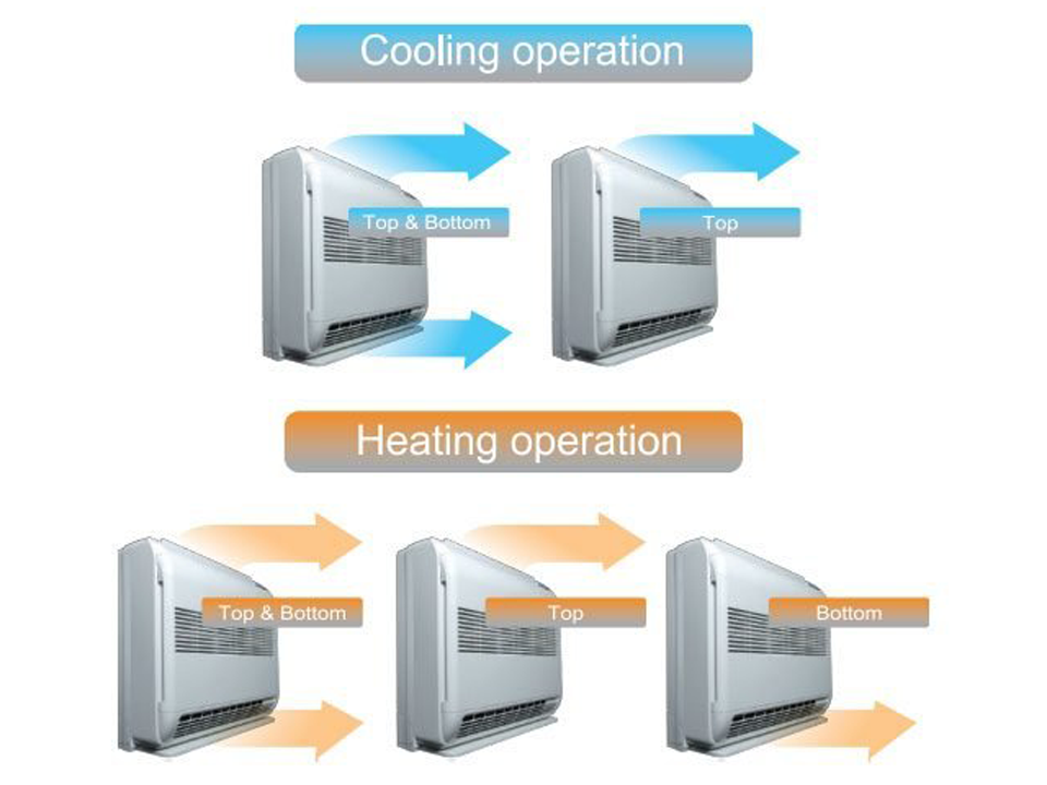 Можете да изберете дали възжушният поток да е от горе или от долу- като функция "топъл килим". Или да изберете мощно охлаждане или отопление и от двете посоки.